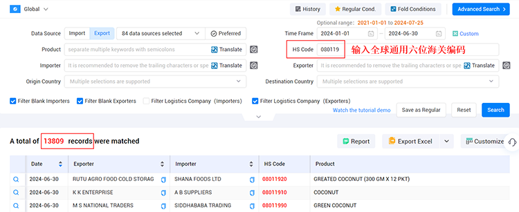 在bbin宝盈集团官网海关数据查询平台中,输入准确的HS Code。如果你不确定要开发的国家,可以使用前6位海关编码进行搜索。前6位编码在全球范围内统一,可以帮助你找到更多的潜在客户。